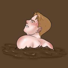 Chuck M got lowered into a big vat of warm chocolate pudding by katieb